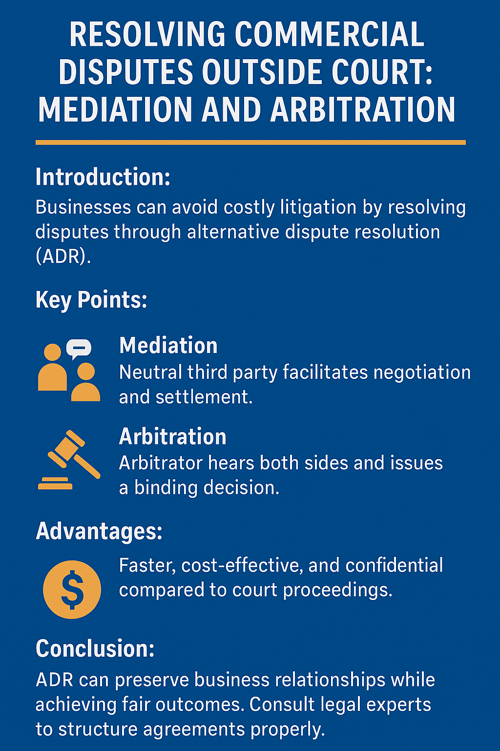 ADR can preserve business relationships while achieving fair outcomes. Consult legal experts to